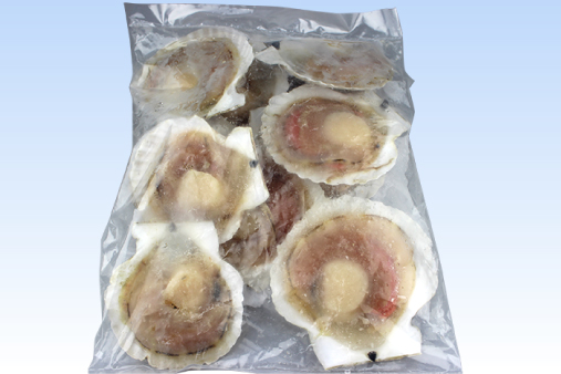 Hokkaido region of the Okhotsk Sea, Volcano Bay frozen farmed scallops with full shell
